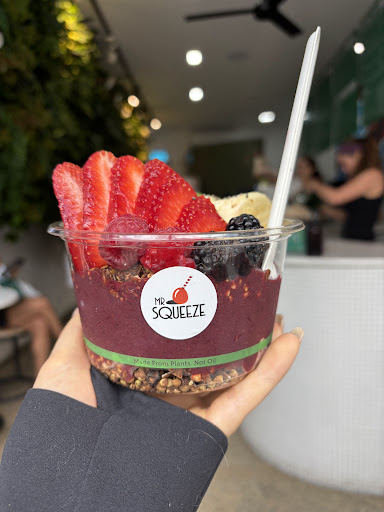 My partner and I are obsessed with the açai from mr squeeze. We've moved away from Australia now sadly (if they fancy opening up a branch in the UK we’ll be straight there lol!) but still talk all the time about it and it's our benchmark for all açai bowls to beat (ie "nice but not at good as mr squeeze"). I love that you can choose between a mango base or a banana base and the toppings are always fresh and delicious. Granola is not vegan sadly but I don't need to try the granola to say the chocolate buckinis are better anyway!! My order is always the original (due to the amount and variety of fruit!) with a mango base, chocolate buckini clusters and add almond butter. It never lets me down 🥰 11/10 I’ll be headed straight there next time I’m...