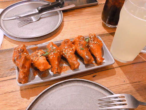Quite a disappointing experience for a foodie but the waiter saved the day. He was friendly and efficient, and honestly this place would be a no go again otherwise. We ordered the lamb ribs, polenta chips, chicken wings, focaccia, and mac n cheese croquettes. Let me start with the lamb ribs by saying there was nothing on them. They were tender and falling off the bone, but there was NOTHING on them. My friends and I expected a smokey & sticky marinade, or a nice glaze, but were sad when we saw pale and dull ribs placed on our table. They came on a bed of “tzatziki” which also had no flavour so the dish overall was quite bland and not worth eating. The polenta chips were decent, but not properly bonded together so they fell apart as soon as we tried picking them up. The chicken wings came with a variety of sauces to choose from - which we assumed they were basted in. Wrong. All the chicken wings were the same - it was only the dipping sauce that was different. Lastly, the focaccia was more like toasted pita and not worth ordering. The croquettes were fine so nothing to rave nor complain about. Overall, the food was underwhelming though the atmosphere was pleasant. Our waiter was running the show on his own extremely well so I cannot praise him enough, although I do believe his skills would be put to better use in another restaurant where people actually enjoy the food. I’ll revisit once the chef sharpens...