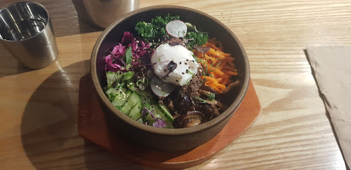 We ordered kimchi soup and politely asked if we could have extra spoons and bowls so we can share it and be out of the door before they close. This guy says "sorry we don't have any spoons and bowls left they're all being washed". I heard his female colleague ask him what he said to me after I walked away and they both laughed when he told her. Clearly the guy was trying to act cool so he can impress her. He didn't even check the back or look around if they really ran out.
