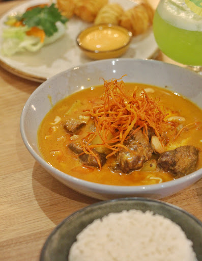 Yello Curry Lamb with rice, creamy, mouth melting yellow thai curry, with succulent lamb pieces and crispy shredded carrot on top, makes it absolutely divine.