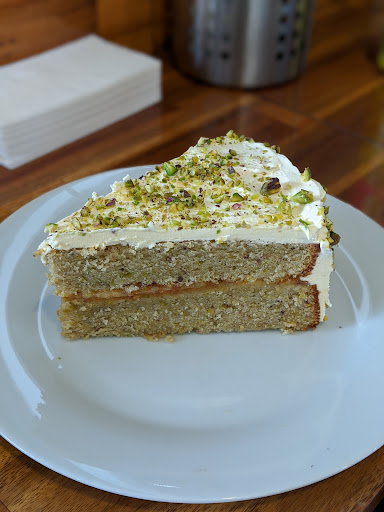 My partner and I enjoyed the tart so much that we went back the next day after passing by and spotting a pistachio and lemon curd cake in the window that sounded to tasty to pass up. The dessert was again very lovely and we'll balanced. Could very easily have been too sweet but they aced it with the sweetness and tang coming dominantly from the middle layer rather than the batter and frosting(which was soft, creamy and complimented the rest of the cake perfectly). I am a lover of icing and don't tend to find many cakes where I could eat the sponge on its lonesome without feeling it lacks a little something, but this sponge was perfect all on its own. The icing really was just a delightful bonus. If your looking for cakes then Nature's Cakes continues to prove that it is the...