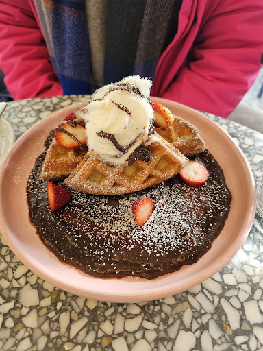 We popped into Nelson to pick up our click and collect order of Inglewood coffee and ended up celebrating our first brunch sitting in after Melbourne lockdowns eased. Felt so great to sit down and select items off the menu. We ordered a strong latte each and I opted for the Nutella Hong Kong Waffles while KD chose the Smashed Kabocha Pumpkin. We shared both and the flavours were standout. The pumpkin dish had so many different elements... poached egg, beetroot hummus, crispy kale, feta and dukkah. Quick efficient friendly service to which is always what you want.