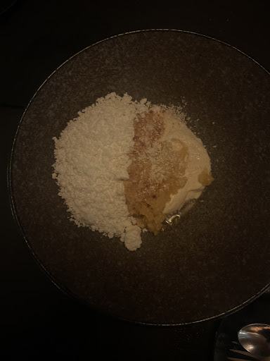 The well designed host area was not staffed so we entered the bar proper on our own. A beautiful seated area to the left was occupied with good looking people. We were told weโd be seated at the bar once a spot was available and were sat at an empty communal rectangular table in the interim.