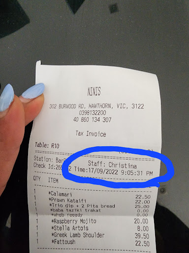 This dining experience ruined my dads birthday. We had an 8pm booking and were rushed out of the restaurant at 9pm as the kitchen was closing - not that we were told this. Upon booking we asked for a nice table due to the occasion - only to be squished between two tables - and being ignored when we asked about this. After being seated 3 waiters came up individually to take our order within a minute as they were closing - we didnt even have a drinks menu yet. The babaganoush was inedible, which we told the waiters. All our food came out at once, again to rush us, when we queried how we were meant to eat it all at once - the waitress told us we hadnt told the kitchen and she couldnt take it back. A complete lack of sincerity in the service - very very disappointing. Was still charged for the inedible item. Highly do not recommend. Definitely wont be back. Dont take an 8pm booking if you dont plan on servicing it appropriately. The digraceful reply from the restaurant below only confims my review - dont call your customers liars and bully them online. I have a time stamped receipt to prove you differently and dont say we asked for a discount when we didnt - asking after we had paid if the inedible item was charged to us, is different, and we paid for it any way. Your response backs my exact experience with you - clearly you do not understand good...
