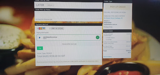 Read moreOrdered for Good Friday, always busy of course so put our order through at 1:05 for pick up at 6 pm. It is now 8:15 pm still waiting. Asked 4 times during this period where our order was no response other than security guard taking the order Name and taking it to the front desk. Finally allowed in the store to ask only to be told they had only JUST printed out our order. Yes that rights the order placed at 1:05 pm, printed at 8:15 pm. People ordering after us coming and going and now they cannot complete our order because they have run out of certain items. We have been coming to this fish and chip shop for 3 years, many times have we used their online ordering and never had this issue including Good Friday last year. Not good enough! No offer of discount or refund for any missing items just will cook what they can of our order now, gee thanks. Definitely worth the now 2 1/2 hour wait, NOT! Get you are busy but even when busy customer...