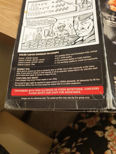 Read moreI don't normally leave that many reviews. I've usually enjoyed Okami and I have been to a few. BUT this one really deserved one, and not in a good way. I will not be stepping foot in Niddrie in the future as it is the most unhygienic place. My friends and I went in last night to celebrate my birthday (note: we spent a lot of money on food and drinks as well) and we were served by someone who was VERY clearly sick with a cold. As she was taking our order she was snuffling, wiping her snot on her sleeve, wipining her nose with an already dirty tissue and at times, wipining her snot on her hands with the very same gloves she was using to SERVE our food..she clearly had no issue with it. At one point, she also put her hand on my friend's shoulder WITH the hand holding the same dirty tissue..she was not wearing a mask. Some of us didn't feel comfortable eating the food by her because we didn't want to get what she had and quite frankly, I can't afford to get sick at the moment. When we complained, the only response we got was "oh I thought she had hayfever". Sorry but if she is as sick as she clearly was she should not be serving food and she definitely shouldn't be working. This should have never been allowed and if anything she should have at least worn a mask. She should have also known better with hygiene practices especially when she was sick but she seemed to have no issue with the way she was spreading her germs. It is unfair that we spent so much money only to worry about avoiding any food she touched, particularly when we were...