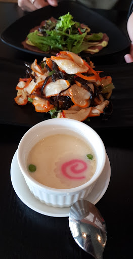 Read moreMenu order: Miso soup, Chawan mushi, Sushi & sashimi platter, Edamame, Teriyaki chicken skewers, Beef carpaccio, Agedashi tofu, Vegetable gyoza, Prawn gyoza, Takoyaki, Chicken karaage, Potato croquette, Squid salad, Cold soba, Vegetable with garlic sauce, Miso steak, Steamed vegetables, Green tea, Vanilla and Black seasame ice-cream and Daifuku, Capriccio.