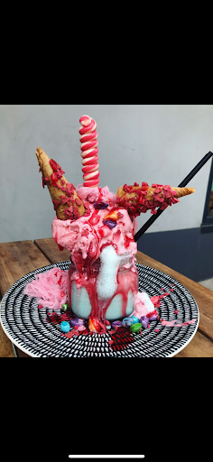We went for the golden ticket and the Willy Wonka which was recommended. I donât think Iâve ever had a blue heaven milkshakes before but I surprisingly found myself quite enjoying it, particularly with the little candies on top of the yummy strawberry ice cream which threw me all the way back to my childhood.