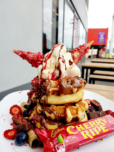 I was invited to try the new pancake and waffle stack, for those who can’t decide between pancakes and waffles, and want something decadent. I couldn’t imagine anyone eating a whole one, so I suggest sharing it between 2 or 3. It was pretty tasty though, it was a good waffle. They come in four themes: kinder, cherry ripe, curly wurly and chomp. We also had some crazy milkshakes. They are on trend, not my preference but I can’t fault them.
