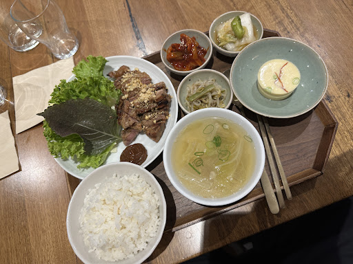 dwaeji galbi single $24, set $32 7/10 the meat was grilled perfectly, lots of delicious garlic on top as well really enjoyable side dishes, nothing to really comment on the soup was a highlight for me