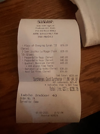 Read moreWe were very disappointed with our recent experience at Osteria Renata. (Friday 6th June, 6:30pm)