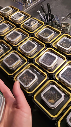 Tea experience: the tearista is very knowledgeable and friendly, we hopped over to the tea table to smell each tea leaves available, they offered many options varying from light to dark, even purple and herbal. Interesting. You get to pick the one you liked the most for your tea, I like that they allowed us to smell, ask "silly" questions, and pick our favorite, because im sure a lot of people like myself could not comprehend the description of the tea leaves available on the menu. So being able to smell, ask questions and pick are very thoughtful, and it gives us an opportunity to i teract and understand tea leaves better.