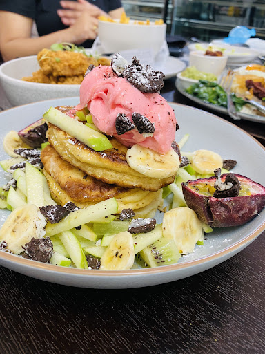 Read moreHad the "Fruity French toast" and it came with lemon curd and pistachios? Unfoetunately there was hardly any fruit in it. The lemon curd completely took over the dish, so if you order this ask for it without lemon curd and pistachios and instead double down on the fruit its supposed to come with. Wifey had the "fire engine" and the bread was so hard it was hardly edible. In addition to that, it had waaaaay too much fried onion on it. The plate was nearly full of it, so if you order this make sure very little is put on. Wife enjoyed the coffee though. Our daughter had the pancakes which...