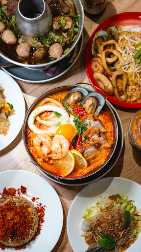 🍳 Steamed egg hot pot 🥩 Braised beef hot pot 🍜 Mama hot pot 🍝 Seafood pad thai 🥞 Crispy fried mussel pancake 🧄 Garlic fried rice 🍞 Kanom pang ice cream 🍰 Durian cake 🍨 Thai milk tea ice cream with topping