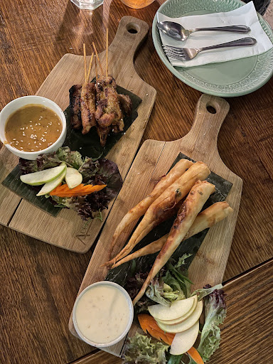 Ā Ā Ā Read moreI went in with a big group, but since it was a weeknight they weren't very busy and they were happy to accommodate. We asked in advance if we could pay separately and they said yes, because it was slow. The staff were very friendly with us and everyone seemed to love their meal. I got the entree sampler as my meal which had one of each of five various appetizers. They were all delicious, especially the chicken satay and the golden bags. It did seem pretty expensive as they were all quite small. But afterward they brought us out little mini ice cream dishes as a surprise freebie so that more than made up for it! Very welcoming atmosphere and staff. Already looking forward to going again.