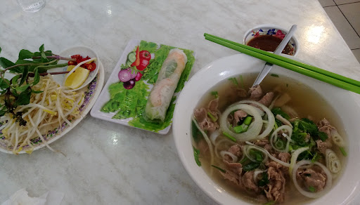 DISAPPOINTING PHO A small cafe on the busy High Street Northcote strip offering a Vietnamese / Chinese cuisine. The name implies a pho noodle specialty so I was doubly disappointed at what was served up as a "chicken pho" - basically a bowl of plain noodles in a weak broth with a side dish of a leg of fried chicken. No bean sprouts, coriander, lemon, fresh chili to rescue the blandness. The service was very perfunctory. We had to wave the staff over to our table despite the cafe having almost no other customers. The other items we ordered were a bit better quality and they were able to cater for the vegan eaters among us. Its the kind of place where you get up to grab your own bottle of water and glasses, poach a container of chopsticks and cutlery from a nearby table and grab a tissue from the box as your serviette. That's all fine given the place doesn't pretend to be high end ... and has commensurately low prices. Probably an OK place to go if all you want is to eat and go. You will be disappointed if you are expecting a good bowl of pho however :(. Its BYO and takes credit cards. People with mobility issue will be fine as it is on one even ground floor level. Parking is just awful here (at least on weekend nights) and you'll very likely have to park a few blocks away on the side streets. The Route 86 tram runs right past the door and the Northcote train station is a 5...