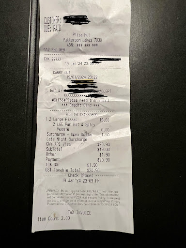 Read moreOrdered 3 pizzas on line at 3.52pm for a scheduled delivery at 6.15pm. Checked tracking at 6.25pm which said it had been delivered. Called 131166. On each occasion the automated system said the order had been delivered and diverted me to the store. First 3 occasions no answer. Final time answered by female who told me they were too busy to get it to me on time so they pushed the delivered button and that it would be delivered in 30 minutes. Despite ordering over 2 hours early the pizza arrived one hour late. Clearly a poorly managed and organised store. Will not be using Pizza Hut again. Will use Dominoâs or any pizza shop...