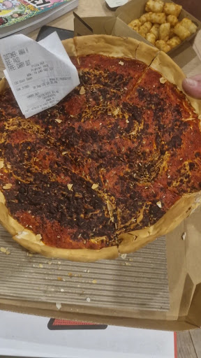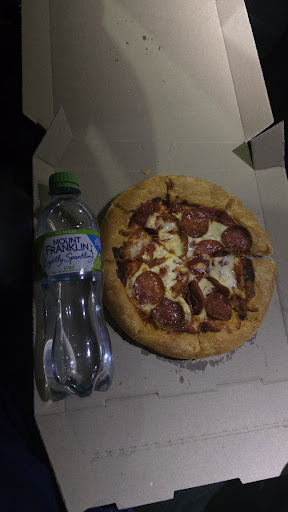 Amber alert for the toppings on our pizzas. We did a pickup for dinner, first time having pizza from pizza hut. We were told there was an offer 2 pizzas+ 2 sides for $32.50. We ordered vegan pizzas (Mediterranean and Deluxe), the plain garlic bread and regular chips. We were charged +$7 because the vegan pizzas are more expensive, but we were told that after we placed our order. We requested to exclude onion from both pizzas and 15 minutes after they came and asked us if we were allergic to onion. We said we weren't and they informed us that they accidentally added it and they will make new. We waited a bit more and they brought our order which we took and went home. When we opened the boxes we couldn't believe what we saw. The minimum toppings, we couldn't even identify where the vegan cheese is, only 3 pieces of olives in a large pizza, and completely empty spaces in most of the slices where you could only see the dough and the salsa. We found onion pieces which proves that they didnt make new pizzas, they tried to remove it after it was baked. We weren't satisfied with the taste...The taste of the chips was awful, and they had a smell like they were cooked with nuggets (yikes...we're vegans and we called to make sure). Garlic bread was just a small white baguette not even cooked properly. We baked it in our oven....