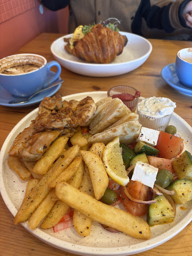 I had the Greek Plate, which came with spiced lemon chicken, Greek salad, chips, marinated Persian feta, pita bread, cucumber tzatziki, and beetroot hummus. Everything was fresh, well-seasoned, and full of flavor. The chicken was tender and juicy, and the dips were so delicious we scraped the plates clean. The portion was generous too — I was full for the entire day!