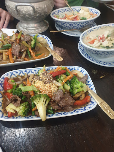 Having been to a fair few Thai restaurants ,I think the atmosphere and ambience was where it should be . We ordered fried wantons and a mixed platter for entree .The fried wantons were fried crisp but the filling seemed like they had put dehydrated meat in there ,tough and hard .. The platter has spring rolls ,curry puff and two satay skewers ..the spring rolls and curry puffs were fine but the meat on the skewers again was tough ,hard and dry . We took their spicy fried rice for mains which really was spice and had flavour but quantity was not great Then came the green curry and coconut rice ..the rice was good but the green curry was a disappointment ..heaps of veggies with not as much meat but the hero of the dish ,the broth was barely there …we had to scrap the dish to get enough broth for the little rice they served
