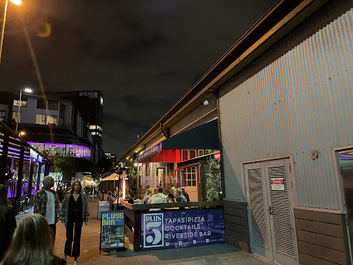 Read moreFoolishly overlooked this place for two entire years but once we tried it, we have literally gone nowhere else since. Plus 5 is a comfortable, consistent waterside bar with a very relaxed atmosphere. It’s a reliable option no matter the weather; if it’s raining or windy they’ll just put the covers up and you stay cozy and dry while still feeling like you’re outside and with a view of the river. Plenty of heater coverage for the winter time too. Music is chill and background level.