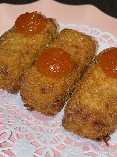 The cheese puffs ? Too much bad cheese and over baked probably par baked beforehand like cutting into a tin can