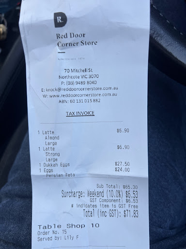Beyond the waitress's efforts to make amends, the pervasive back chatting from both wait staff and the barista as I departed underscored the frequently criticised customer service at Red Door Corner Store. Perhaps it's a generational preference, but the atmosphere left something to be desired. Gen Zs do not like to be offended...