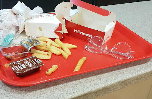ORDER: Two rooster rolls, small chips and a SMALL BOTTLE of solo. DELIVERED: 2 Rooster rolls. Chicken volume was from two wings MAX. Bonus: 2/3 cup of gravy drenced the roll in chicken flavoured flour clag. ..the champion of the filling in volume. Chips: had to dig through the salt to find the chips of various lengths and widths, half of which here burnt and soaked in an odd vegetable oil - no idea what half tasted like as the black/brown coating stained my fingers. Other chips were ok - but were "sadly warm" from their experience with their battle-scared friends. DRINK: got a CAN of Solo. Asked for it to be replaced with a small bottle. Got a ONE straw handed to me (my wife was with me - clearly challenged). I CHOSE LIFE, AND LEFT...the waitress has disappeared in a flash anyway.