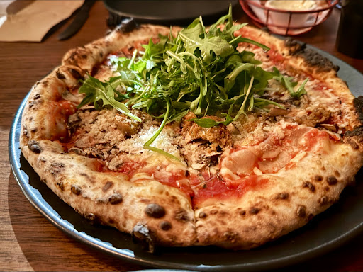 Food was okay, except that the pizza base was soggy (apart from the crust which was delicious). Service was okay. Sadly we didn't get to dessert because the atmosphere was appalling, we left before my friend even finished her cocktail (which wasn't very nice anyway). It was incredibly loud to the point we had to lean in over the table and shout at each other to have any chance of being heard. I think we must've been at about the worst table in the place (it should be scrapped). It was in the back near the kitchen and the door to exit outside to the toilets. I was whacked on the back multiple times by staff and patrons as they went past (and I'm very thin, I hate to think how a larger person would have fared). I also had to get up and close the door constantly as it kept staying open and letting the freezing cold winter air in when people went out. It was an awful dining experience. I told the staff but they just shrugged. Then I received an email asking for a 5 star review or to let them know if tbere was a problem. I replied and explained the issues we'd had and they didn't even bother to respond. So now they can have the review they deserve (nowhere near 5 stars!), which I wouldn't have posted at all but for their invitation