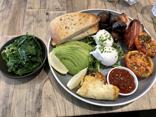 They’re doing a lot of things right here. It’s a nice spot with a lovely light filled outdoor area on the right day. Inside is terrific too. Numerous things stand out here but number one is the service. It’s utterly delightful. Each of the three staff members who attended to us was wonderful. Efficient, friendly, polite and slightly humourous. That to me is pretty much perfect service. The all important coffee and food are excellent too. The coffee was utterly beautiful. Strong, silky and substantive. I had two superbly made long blacks here. I could not fault them. My dish off the all day brekkie menu was a beauty too. It is called the Herbivore and I loved every element, particularly the haloumi, the bacon and the avocado. I loved it. My colleague loved his fish and chips as well.