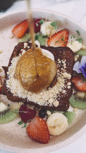Now, let’s rave about the food. Each dish we tried was a revelation, bursting with flavor and fusion originality that had us planning our next visit before we even finished our meal. The standout was the "prawny business," a delightful laksa featuring coconut prawns and steamed rice wrapped in a silky scrambled egg. We also enjoyed the "pumpkin king," which paired pulled pork with a crunchy pumpkin croquette and a delectable hollandaise sauce—absolutely top-notch. To finish, we also indulged in French toast served with vibrant fresh fruit.
