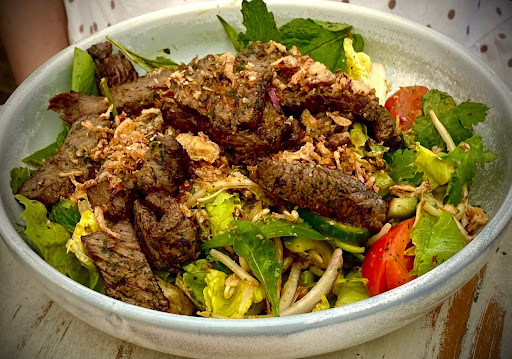 The first time I tasted was the beef was just warm fresh from the chargrill and sliced thinly placed in the salad.