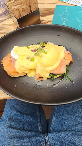 Rickett's Point was busy when we visited and they only take bookings for large groups or dinner. We ordered via my phone, but you could also order at the counter. Food was extremely quick. Their deck overlooks the foreshore, but you also wouldn't be disappointed to dine inside, as the large windows will provide a relaxing ambiance too. Rickett's Point Beaumaris was previously known as Rickett's...