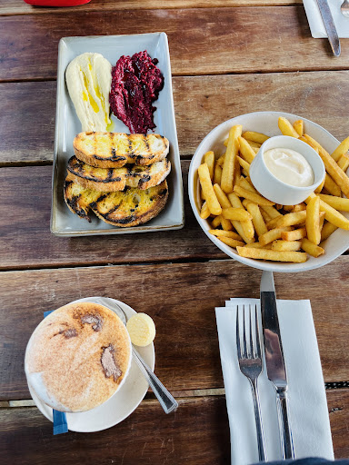 We started with the house dips, with nicely toasted sourdough, micro herbs, a beetroot dip and hummus, which was a tasty starter. I had the Black Angus beef burger and fries (standard fare I know) but it was good and generous. My wife had the Falafel and chickpea curry, with pilaf rice and naan bread and she said that it was really good.