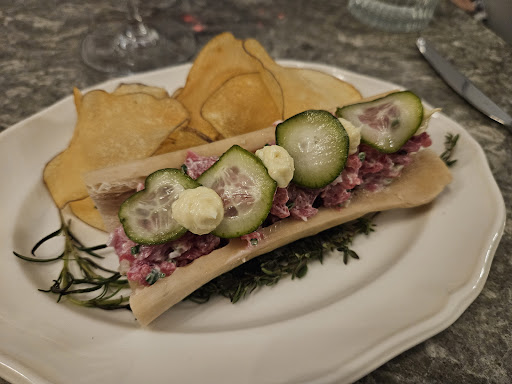Read moreDined here for the first time for a birthday in the small private room a the back (good for groups of up to 10),. Two things I hoped and expected were spot on. The authentic and creative Italian culinary experience, and a great wine selection. The additional aspects you never know until you've been (Google reviews aside) are the ambience and quality of food and service. The waiter who looked our party - Tomassio - certainly helped make the night. From Veneto himself, and now more 'local', as he related, was the right balance of knowledgeable, frendly, funny and professional in the hospo sense - with a good memory for orders and the ability to pace the service - that we appreciated. We were with people who'd eaten there many times and they related that the food has been better, but the quality was still clearly there for the most part. Fish of the day was a bit bland and two porterhouse steaks ordered medium rare were essentially bleu. The steaks could have been sent back for a bit more pan time but both diners were good with meat that way so it was more than acceptable, and great quality. I'd had the steak tartare which was an interesting take and a good indication I don't mind beef super rare! The beetroot 'ravioli' was also creative and I gather a bit of a signature dish. A dessert special of lemon cheesecake with blood orange gel centre and mild mint gel dots was delicious. The menu is diverse and the wine list has a great range. On leaving it was clear a few local wine lovers were inhabiting the front bar area enjoying a social drink. A nice experience and I anticipate going...