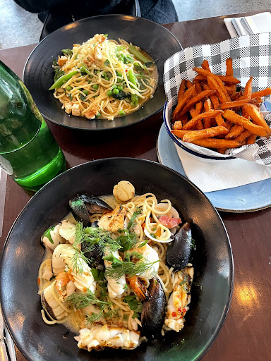 The pastas were good– appreciated the use of fresh seafood rather than frozen seafood, and the dishes were all cooked to perfection. However, all the dishes were slightly under-seasoned, and the chargrilled seafood pasta was overpowered by lemon and dill, throwing off its balance. The sauce for the sweet potato fries was insufficient for the whole bowl. It was at the pricier end for what it was but I would come again only to try other dishes on their impressive menu list.
