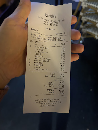 He then talked to the female owner again, and she came back but stormed off to the kitchen as we tried to explain. We felt a bit upset and immediately paid the bill and left. But guess what! We were charged for an extra cup of French Earl Grey tea. We ordered one tea per person for 9 people, but we were billed for 10.