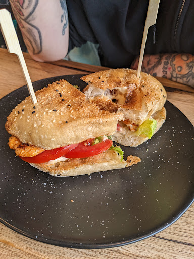 After reading some fairly average reviews mixed in with some 5 star reviews my husband and I decided to try the round about cafe for ourselves. Oftentimes I find the bad reviews are just Karen's having a whinge for the sake of whinging. Anyway, lots of parking out back and on the roadside so that was a good start. There was a notice on the door to say they were short staffed (as is every business currently) and there may be a wait on service etc. We weren't in any hurry so this wasn't going to be an issue for us but it turned out there was no wait on anything. We were greeted as soon as we walked in and seated in a good spot that was well away from the door. Thoroughly appreciated as the weather was horrid and we had our baby with us. Although we were seated directly under a speaker we didn't find the music too loud or overwhelming especially for someone like me who can get over-stimulated very easily. Waitress gave us just the right amount of time to choose our meals and drinks before approaching us. I had a latte in a mug with oat milk. Requested that it be warm as opposed to hot and that is exactly how I got it very shortly after ordering. Was a very nice coffee. Husband had a can of coke. Was given the option of a glass with ice but decided to tough it out with just a straw đ. For our meals I ordered the vegan breakfast bowl and added a poached egg. Husband ordered the chicken focaccia. Meals came out promptly. Both were delicious and generous. Husband can be quite picky so the fact that he said the focaccia was one of the best he'd ever had is quite impressive. On the way out we grabbed a couple of slices to go. I had the choc peanut butter slice (Gf and vegan) and husband had the Snickers hedgehog. Both were very generous in size for the price and absolutely delicious. Plenty of GF and vegan options and menu really caters to a wide audience. General vibe and ambience was nice and we will definitely...
