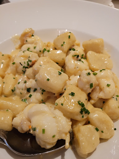 We ordered mini lobster bug tails with honey and sesame seeds. I found this a bit sweet and overly fried. We also had seafood linguine with mussels, prawns, octopus and scallops which was a yummy dish. Three of us had the bay lobster and champagne gnocchi in a cream sauce. The gnocchi itself was very soft and delicious however overall I found this dish a bit heavy and too creamy. It would have been nicer with a lighter sauce. The fresh seafood platters looked great and might be the better dishes to order.