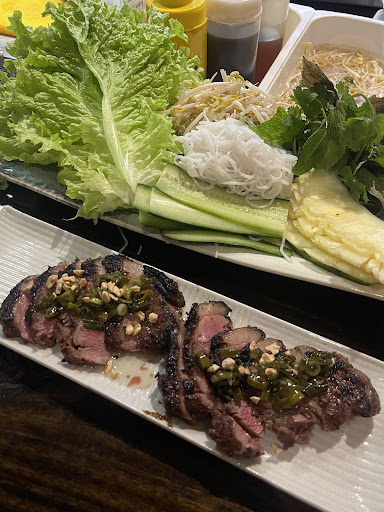Read moreHaving read The Age review, we chose this restaurant and longed for the duck. Upon arrival we were seated next to the only other table with occupants, making conversation and comfort less than natural. Entrees ordered, having been told that our preferred option, the spring rolls, weren't available, were nevertheless tasty. The rice paper rolls were appreciated and devoured by all at our table. Main meal was clearly going to be the duck, given the reviews, so we ordered two serves. Major disappointment, as the duck had a minimally flavoured sauce and was rather flavour less, difficult to chew and digest due to the gristle. With no knives provided it was virtually impossible to cut and access an edible portion. Embarrassment followed when I had to spit out the half chewed item. Such a disappointment. The ambiance of the room was chic, modern, but rather sterile. Service reflected a lack of personal connection. No doubt this has the makings of something good but we'll leave it for others to...