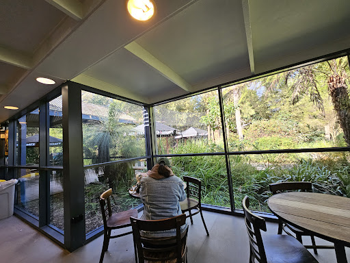 Food consider really good given this is inside the zoo. They have plenty of Asian and Koren menu. Poke bowl is very good, smoked chicken version is good. Salt and pepper tofu also very good too. It looks exactly like thick chips and crunchy too. They also offer multiple tea version, including T2 cold tea bottle. They also have usual Australian favorite menu too, including South Melbourne dim sim, fish and chips, pie, burgers etc. Staff are very friendly. Coffee are very good in this café. They also offer free water. This café have indoor and outdoor seating. Toliet and parents room are just in front. Very convenient. Bin chicken often come into the cafe and...