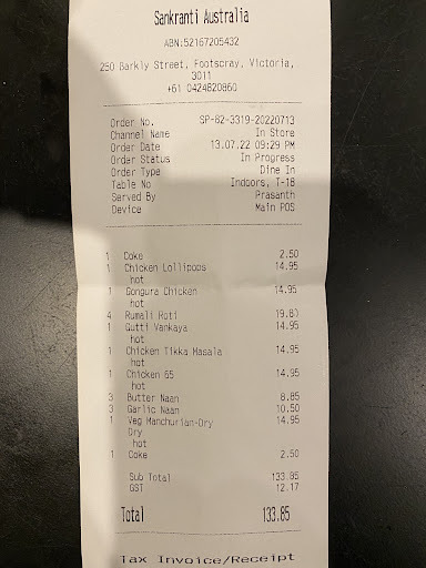 Some things were great, other things, not so much. I was super excited to see Mysore bonda and Punuglu on the menu as I have never seen them at a south Indian style restaurant in Australia. Mysore bonda was fantastic. It had a crunchy outer layer with a soft fluffy interior. The taste and the consistency was awesome(chef you have nailed it, I love it). The disappointing part was the chutney. It was served cold. It lacked tadka or thalimpu, it lacked seasoning and the chilli hit that one would expect from it. Punuglu tasted a bit dougy. We also had some chat items, panic Puri and papri chat. Full marks for presentation but again panic puri juice was very cold and lacked punch. THE BIRYANI: OMG I love my Biryani and Sankranthi mutton Dum Biryani is one of the best in Australia.(Trust me, I know. I grew up in Hyderabad. Enough Said! đ). I could tell the meat was slow cooked and tender, the rice aromatic and flavoursome and it is actually cooked in Dum. I even confirmed that with the manager at the time. If I was rating just the biryani, then 5*. This restaurant is a good 40 min drive from where I live and I would gladly drive for that biryani. Ok enough about the biryani. moving on. The restaurant itself is descently decorated and has good furniture. My request to the owner, there was some funky smell going on near the handwash area, please fix it immediately. Staff and the manager all seemed very nice and polite and they seemed to be trying but overall the service felt slow. Finally I would say I'm not here to name bash. Sankranthi has some interesting items on menu, please don't get me started on the biryani again đ, has a lot of potential, OBVIOUSLY, I recommend the biryani but...