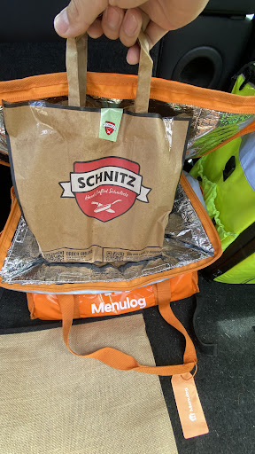 SCHNITZ Staffs require delivery persons to carry insulated bags when picking up orders, which I completely understand and always comply with. However, my car was parked quite far away, and my insulated bag still contained orders from previous customers. The bag is heavy and not convenient to retrieve immediately. I took photos to show the staffs to prove that the cooler bag was in my car, and I even grabbed the green bag at that moment because I understood they needed it. Yet, the staff still refused to deliver the order and was unwilling to help.I was please ,please and please.