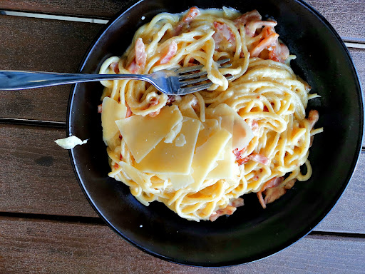 Pasta Carbonara was good too, but it was too cheesy for a warm day and a bit on blander side. I would definitely recommend making a different pasta for warmer months, like - Pasta Pomodori, or Chilli & Garlic pasta.