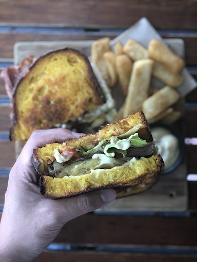 Steak Sandwich $20: Eye fillet, lettuce, tomato relish, seeded mustard mayo, bacon, onion rings, tomato and cheese on pumpkin sourdough with fries. Personally we're not usually a big fan of sandwiches, but this one by the Sebastian's team blew us away! The steak was perfectly cooked, not too tough, bread was crisp, flavour balanced very well.