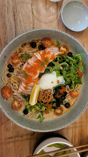 Read moreAs soon as we entered we felt transported back to the cute quaint restaurants of Japan. We ordered their sake tasting set, which increases with complexity with every shot. The rikhaku sake was our favourite, subtly sweet with the rice wine aroma . We started with the miso fried eggplant which was so tender and coated with a sticky miso sauce. We also tried their winter limited menu â the duck soba is a must order, it was so flavourful and rich in umami. The toronto mushroom soba is also a must try, it was so thick and rich with the earthy mushroom tones. The salmon tasted so fresh and the salmon bowl was our favourite! Every dish was so flavourful - yet felt healthy, light but hearty. We loveeed their roasted Japanese tea ice cream, especially with the roasted buckwheat which gave it a unique crunch and was not too sweet! We did find that the matcha flavour could be a little stronger. We love the vibes and the dishes of this place and definable worth the trip if you want to be...