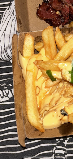 I ordered a carnival fries and was very disappointed to see half the toppings where missing and what looked to be a whole piece of steak on top ( was just poorly cut beef bacon cut didn’t even bother to try, same with spring onion barley any and not even cut)