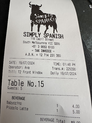 Read moreSIMPLY SPANISH is just that - Simple. The atmosphere of the market and the people walking past is a definite 5/5 but thatâs nothing to do with the restaurant.