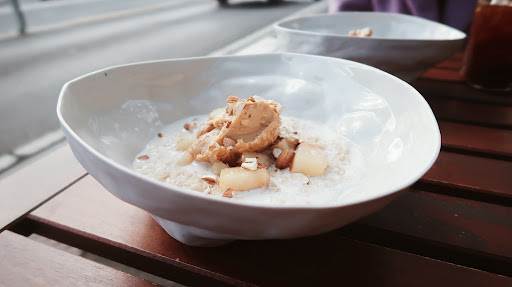 I visited here with my friend for Saturday lunch, and ironically, we both wound up ordering the same thing -- a new addition to the Winter Menu at Snow White, the porridge. We added peanut butter to the dish, and also both enjoyed a Nana Bing smoothie (with almond milk as we’re both vegan).