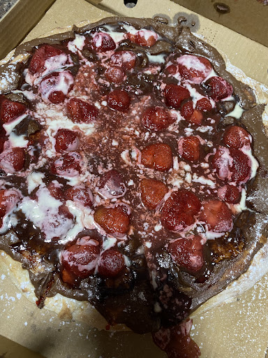Read more0/10. A dessert pizza should have fresh fruit ontop uncooked. They bake their dessert pizza with FROZEN strawberries. This pizza absolutely stunk, like a funky acidic rotten smell. As soon as I hopped into the car, my whole family could smell something rotten. Thinking with the slightest possible chance this pizza might taste better than it looks? Nope it tasted worse. To top it off I called & complained & the manager said it was just a sensory issue because I didn’t like the soft strawberries. Apologised that they may have been in a rush & didn’t get to strain the “syrup” off the pizza. The syrup they’re referring too isn’t syrup, it’s the defrosted water from the frozen strawberries 🤮 Pizza base was soo soggy & it tasted horrible. Just gross, was offered a replacement but I declined. I probably would’ve just received the same frozen strawberry pizza without the liquid if I accepted. They should put out a disclaimer that they cook their dessert pizzas with frozen berries. LOL can’t believe they think this pizza is actually popular, gross. Probably a way to cut costs using frozen berries but is cutting back on quality really worth it? Use fresh fruit &...